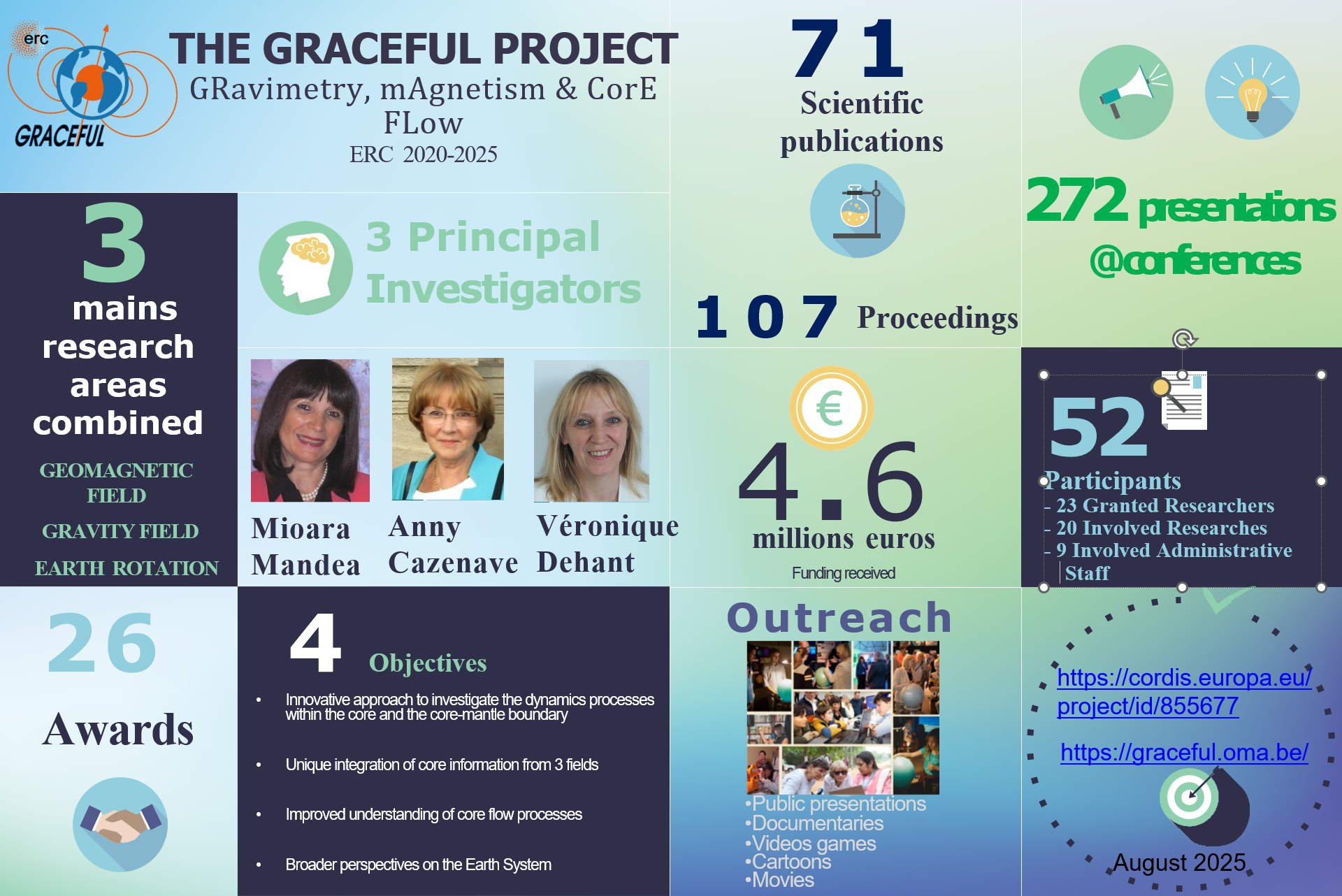 The GRACEFUL (GRavimetry, mAgnetism, rotation and CorE FLow) project project is a Synergy Grant (Number 855677)